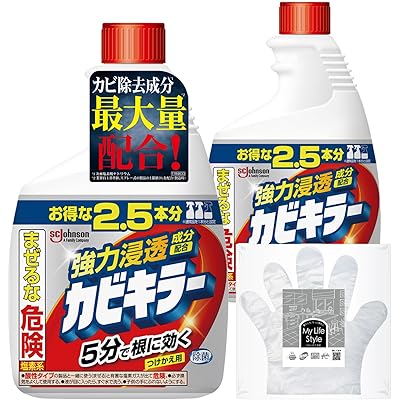 ジョンソン カビキラー カビ取り剤 特大サイズ 本体1000g+付け替え用 1000g お掃除手袋付き 送料込832円(おトク便3種で785円)ほか